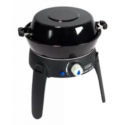 This compact, versatile gas barbecue weighs less than 4 kg and comes with at least three different cooking surfaces; a burner with potstand, a BBQ grid and a lid/dome ( the lid/dome can also be used as a pot).