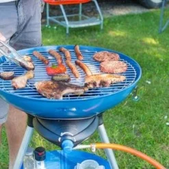 All elements of the Party Grill can fit inside the device.Thanks to its detachable legs and lockable lid it is easy to transport and store. The Party Grill® 600 runs on conveniently sized Campingaz cylinders. The piezo ignition promises simple, match free lighting wherever you are, so you can get the party started.