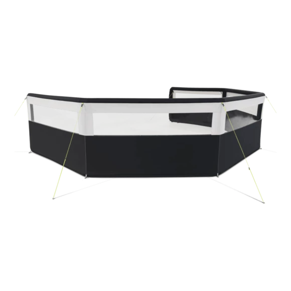 Utilising our unique AirFrame system with single point inflation, the AIR Break Pro is surprisingly sturdy in the wind and its striking colour combination and use of Weathershield™ Pro material make it a great match for our AIR Pro awnings. A window panel runs throughout the windbreak allowing visibility out.