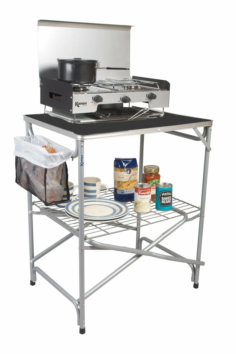 The Kampa Major kitchen stand, is quick and easy to set up and will fit the majority of the popular camping stoves