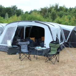Experience the ultimate in camping comfort and convenience with the Outdoor Revolution Airedale 9DSE Tent. This upgraded 2023 model offers an unprecedented seven-plus-four berth layout, giving you the flexibility to sleep up to eleven people. Enjoy improved ergonomic lines, additional windows and curtains, and a single Air Tube instead of a Steel Pole. Plus, you can further customize the internal space with optional two-berth inner tents and a Universal inner tent, perfect for all-season use. With a spacious porch and roll-back panel, you’ll be camping with confidence and luxury.