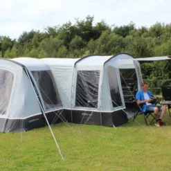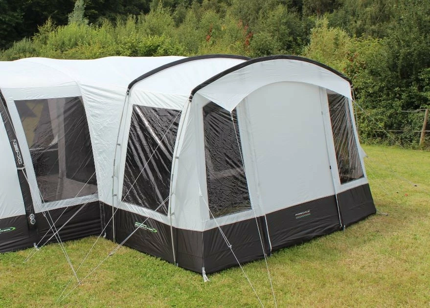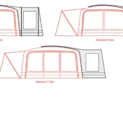 The BRAND NEW lightweight pole and sleeve Airedale Side Porch Awning is the ultimate sheltered utility space to fix alongside your tent. Featuring 2 front windows and 2 side windows, cooking ventilation, zip-in curtains and a removable PE groundsheet, this Side Porch fits snugly around the contours of your tent using a combination of carefully positioned pegging points and guy ropes. It is made specifically for cooking, storage, dining and relaxing, with the added benefit of being able to use the front door as a sun canopy in conjunction with optional Extension Canopy Poles. Whilst it is designed to fit the Airedale 6.0S, 6.0SE and 7.0SE tents perfectly, the universal nature of the fitting of this Side Porch means that it is not restricted to just these models and can be manipulated to fit most tunnel tents of a certain size.