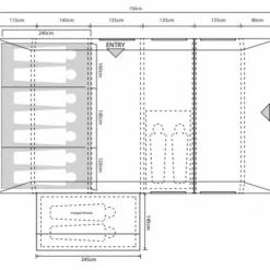 - Footprint 705 x 445cm (Main body) + 245 x 145cm (Side Annexe)