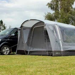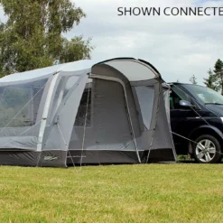 Introducing the innovative and versatile Cayman Combo Air drive-away awning. Its unique design offers mirrored access from both front and back of the awning giving complete flexibility to suit individual needs, this means the awning can be flipped to fit on both left and right sides of a vehicle. This hybrid awning is pitched using both air tubes and poles and is available in two ergonomic cowl height options to offer a great fit to the vast majority of campervan or motorhomes with a rail height of up to 255cm. To further enhance the versatility of this awning an optional Porch Door can be added to the front and/or back to give a fully enclosed usable space outside the main living area. The Cayman Combo Air comes with a wealth of features including a ‘fold-flat’ sewn-in groundsheet, mesh fly screen panels on all doors, and an option to add a 2-berth inner tent. Look no further than the Cayman Combo Air for style and versatility at a great price.