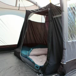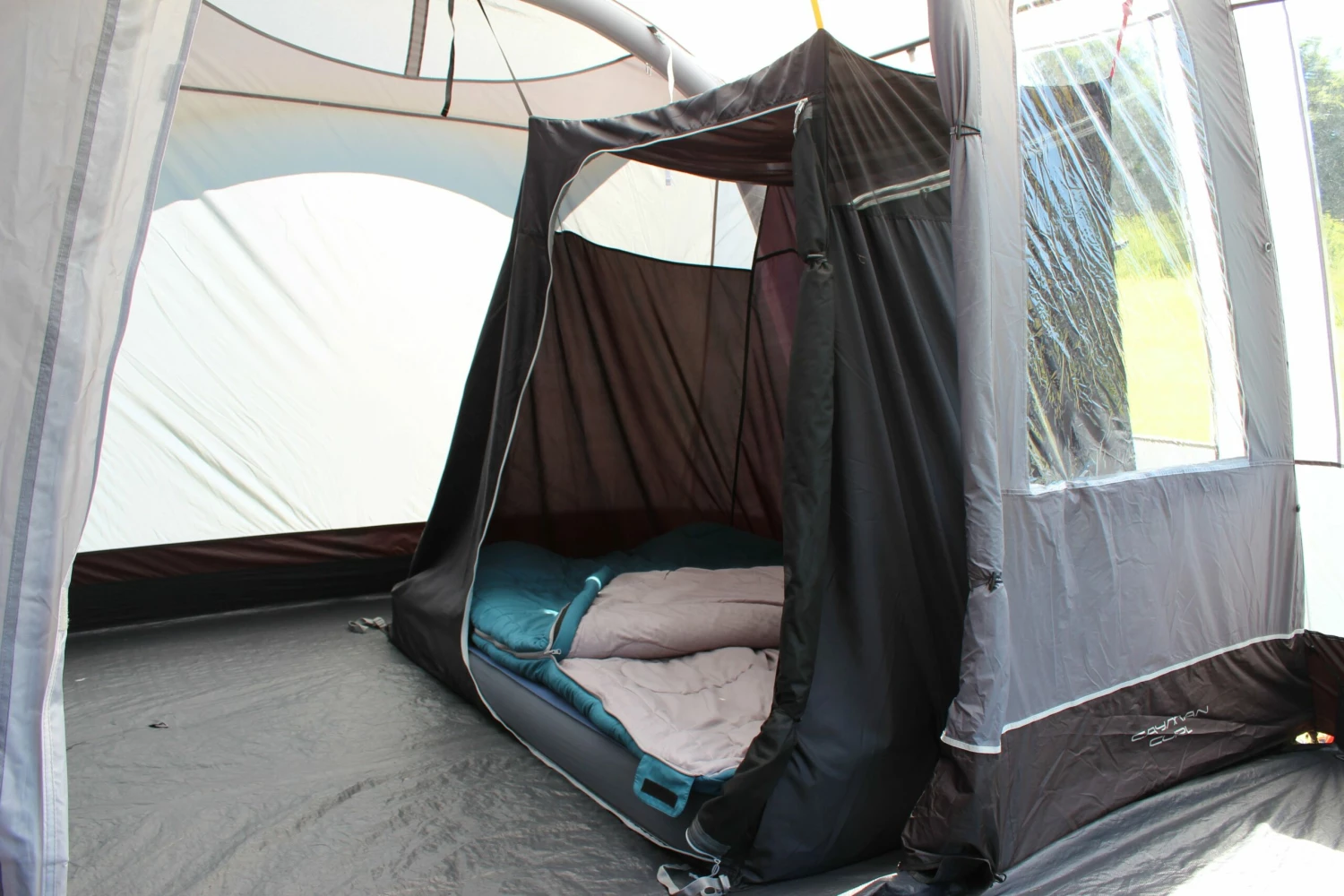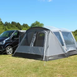 The Cayman Curl Air is a lightweight Inflatable Drive-Away awning designed in the popular side-by-side style, meaning the front of the awning faces the same direction as the front of your vehicle. It’s small pack-size and simplicity to pitch using two air-tubes and single fibreglass pole makes it a fantastic choice for touring vehicles. Available in 2 ergonomic cowl sizes to fit rail heights of up to 255cm, the Cayman Curl has the useful feature of a Velcro-In groundsheet, it is fixed using a number of Velcro pads which create a tight and durable fit whilst giving the added benefit of being able to remove it completely should you wish. There is a large open canopy perfect for sunshade, to use as a cooking area, or for weather protection while the main front door is open. There is also a large door in the rear of the cowl to allow access to the vehicle without the need to come through the awning itself. A rear ventilation panel coupled with under-window vents and mesh in the cowl door help to maintain airflow inside the awning while minimising condensation, and an optional 2 berth inner tent can be purchased to clip inside to allow the awning to be used as an additional sleeping area.