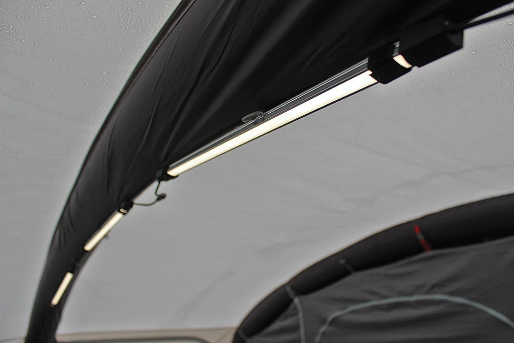 The Lumi-Link Tube Light Kit is a revolutionary triple roof LED tube light kit, which has been designed for compatibility with all of our family tents, drive away awnings, and caravan awnings from 2018 onwards, using a simple Velcro-in system, allowing you to transform the internal evening ambience of your Tent/Awning on those darker nights in the great outdoors. There are three power options available, including a mains connection, USB connection (requiring 12V USB Charging & Power Hub) or car cigarette lighter connection. We have introduced six dimmable brightness settings, allowing these accessories to serve a range of purposes, from a brilliant ceiling light to illuminate the internal space to a dim ‘night light’ for children. A remote-controlled dimmer makes switching between each brightness setting effortless, while a robust hard-case (included) ensures this kit is kept safe when packing and transporting.