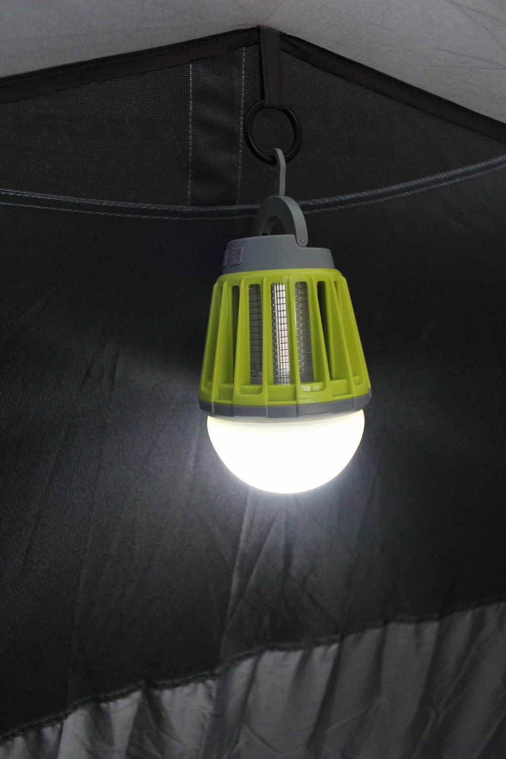 Our USB rechargeable Lumi Mosi Mosquito Light delivers a convenient 2 in 1 LED lantern light and ultra-violet insect killer, designed to provide a cosy evening ambience, whilst maintaining an immaculate internal living area, through eliminating any pesky bugs before they have a chance to settle. We have now implemented a BRAND NEW ‘Amber’ setting in our upgraded model, which provides a function that does not attract midges or mosquitos. This camping essential is rain resistant and features an ergonomic fold out hanging hook, allowing it to be suspended from anywhere, whether indoors or outdoors. This accessory is as effective as it is simple and comes complete with three brightness settings, enabling it to function as a dim night light, medium brightness setting, or a brilliant ceiling light to illuminating your entire awning or tent on those black winter nights. This optional extra is ideal for use in conjunction with our 12V USB Charging & Power Hub.