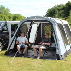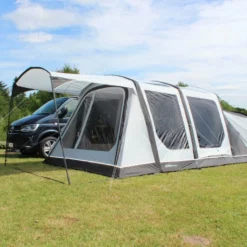 The Outdoor Revolution Movelite Porch Door is a fantastic addition to the Movelite T3E & T4E. Connected using a robust zip, it fits snugly around the front tube of the integral awning porch creating a weatherproof seal using a tight-fitting gusset. There is a large zip back door which allows for full or 2/3rds opening complete with large windows with zip-up curtains, behind this is a full mesh panel which can be left in to offer maximum airflow through the awning while keeping insects out. Complete with PE groundsheet and additional toggle in curtains for complete privacy this porch door creates a practical sheltered and private space, and combined with the full roll-back internal door of the awning can be used to significantly extend the internal living space to suit personal requirements.