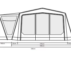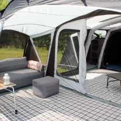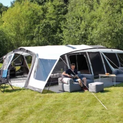 An optional front porch extension canopy and side veranda canopy extension can be purchased to create a central commune area, granting an unprecedented amount of sheltered living space, making it perfect for winding down with friends, family, or unexpected guests. This heavy-duty family tent is the ultimate choice for families craving supreme quality, spacious accommodation and a refined sense of luxury in equal measures.