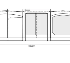 The Ozone 8.0 Safari Lodge integrates every popular innovation found on its predecessor, such as the double width side access doors on each side of the tent, the unique sewn-in front porch groundsheet, a wealth of mesh ventilation including a removable central door panel with mesh windows, and darker ‘Twilight’ bedroom inners to name a few. One important feature of ‘The Lodge’ is the separation of bedroom options, effectively offering a total of 4 completely detached and separate sleeping areas, great for families or groups who want their own space.