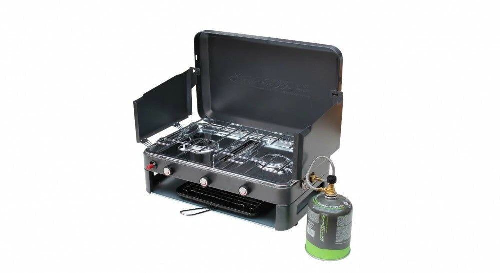 Outdoor Revolution’s new and unique Twin Burner Gas Stove and Grill offers the perfect blend of high performance with compactness and style. Thanks to the braided hose with control valve which takes a Butane Propane screw fitting resealable gas canister, there is no need to use a separate hose and regulator with a refillable gas cylinder, which cuts down on space and weight during transportation. This is the only Twin Burner we know of in the market currently that has 2 burners and a grill that takes this type of high-power gas canister. You only pay for the gas you need to use when you are away whether it be for a weekend or an extended trip.