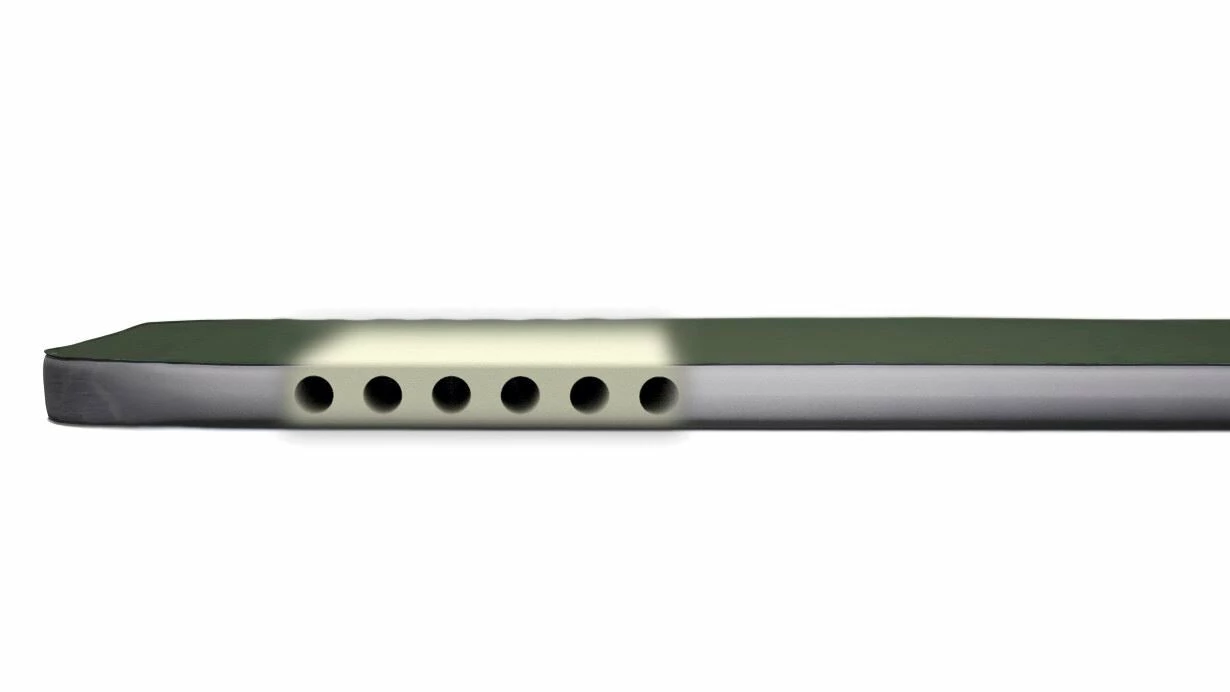 - Horizontal air channels reduce weight and pack size