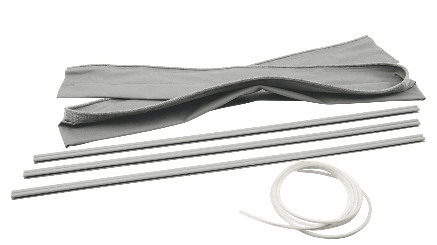 Kit includes magnetic strip with beading to attach to the metal roof of the van and figure 8 to connect the awning.