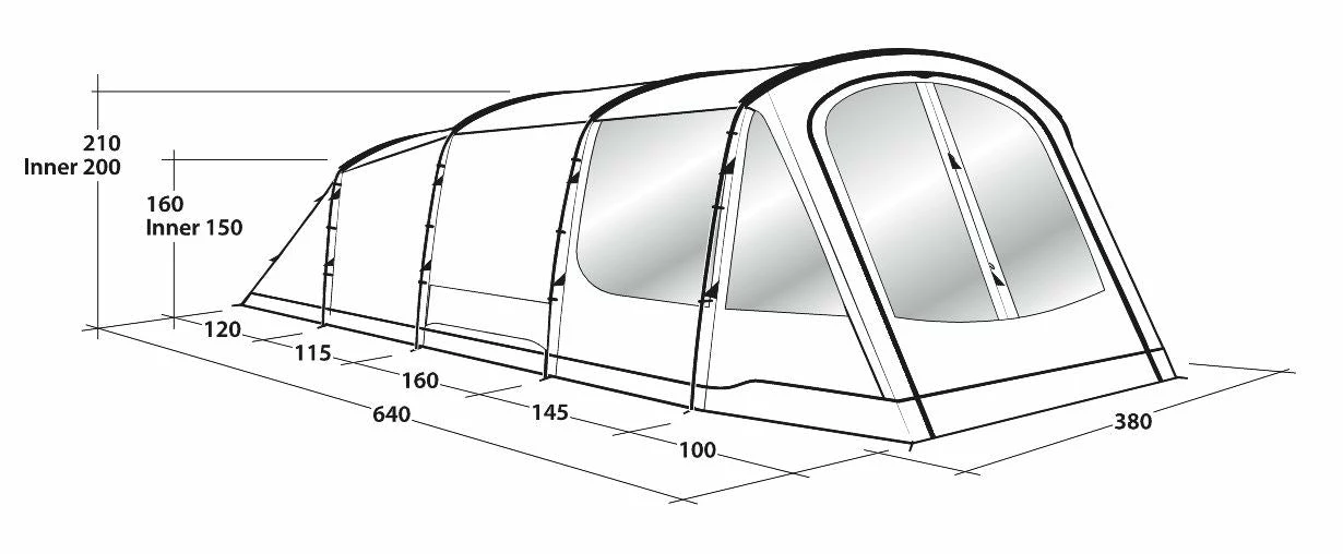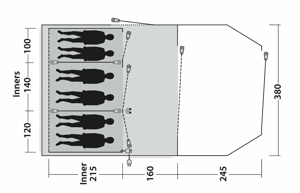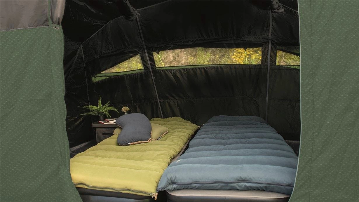 Sleeping six in three Premier Bedrooms with Dark Inners and Outwell Quick & Quiet Inner Doors, Norwood 6 offers versatile space in three zones, ideal for active campers seeking flexible tent living. The wide front of the light-filled design, with steep sides and front for maximum usable space, the Outwell HookTrack System, Rear Ventilation System, D-door and side door ensure practical camping comfort.