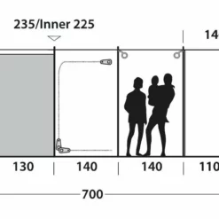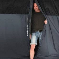 Sleeping seven in three Ambassador Master Bedrooms with Dark Inners and Quick & Quiet Inner Doors, the Vermont 7PE offers spacious, light-filled tent living. Easy opening of the steep front door under the extended front plus twin side D-doors with mesh offers flexible access and extends ventilation options. Pre-bent poles deliver superb stability plus steep walls to maximise internal space and offer full headroom. Home from home comfort and convenience is assured with Quick & Quiet Access to zone 2, the Outwell HookTrack System, Easy Pegging System, Cable Entry, zip-up curtains, Rear Ventilation System and low side vents.