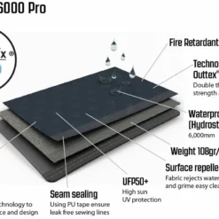 - Groundsheet: Double-coated waterproof polyethylene, 100% polyethylene
