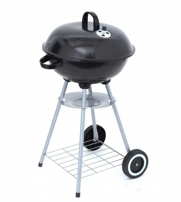 Sausages fresh from the grill and the aroma of juicy steaks hanging in the air: A tried-and-true recipe for a fun-filled BBQ evening. The kettle grill “Key West” is the perfect companion for real BBQ fun whether on warm summer nights or during the colder months. The compact kettle grill can be used by the BBQ enthusiast in many different ways. The two-tier kettle allows you to close the upper part to prevent heat from escaping. The lid gives off this focused heat evenly to the food on the grill. Similar to a convection oven, this means your food cooks evenly on all sides. Special air vents afford even air circulation during grilling and prevent the coals from going out while the lid is closed. Indirect grilling – where the food lies in a enclosed space, not directly above the flame – is the barbecue method of choice for gourmets and can be practiced easily with the “Key West”. This grilling method makes for crispy yet juicy roast meat – every time. If you remove the lid, the kettle grill can be used like a normal grill. Nothing is standing between you and a long fun-filled BBQ evening: Use the included hook handles to easily lift the grill rack. Adding more fuel is hassle-free and the excellent base air circulation guarantees a perfect bed of coals fast. With its wheels, the kettle grill can be easily set up wherever you need it – in your garden or on your patio. Surprise your friends and family with new dishes from your new “Key West” grill and learn the meaning of enjoyment!