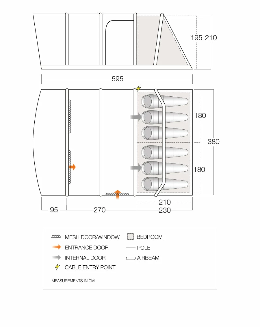 The new Vango Aether Air 600XL, 6-man tent is an inflatable AirBeam® tent within our new Earth Collection. The new collection launches our Sentinel Eco Fabric, made from recycled single use waste plastic. Not only does the Aether reduce plastic waste from the environment but benefits from key features such as Villa Construction for greater head height and internal space, allowing you to use the space right up against the tent walls. Another feature is the Pre-Attached Extension, offering extra living space and a real outdoors feel, as well as a double living area and large front door, which can be fully rolled back or the side door can be King Poled open to enjoy the good weather, or zipped up when more shelter is required. Fresh air flow is also a key feature as both the living room doors have mesh panels which increases the airflow, whilst keeping the bugs out. The Aether also features our AirBeam® technology, ensuring quick inflation and a sturdy and reliable structure and benefits from clear access, queen sized bedrooms, designed with a wider entrance, with no step over into the bedroom and the Nightfall bedrooms reduce early morning light.