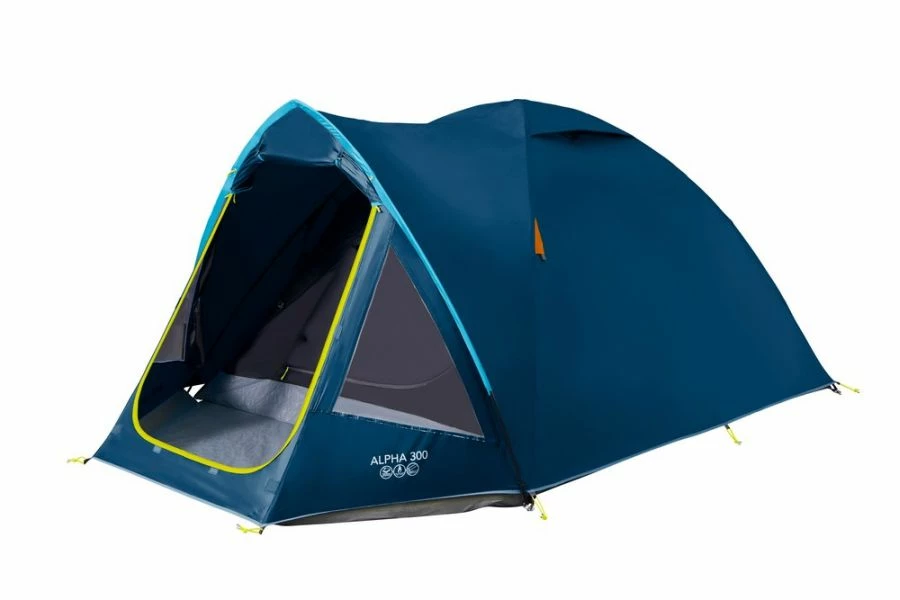 The Vango Alpha 300 3-person shelter boasts a seamless linked-in groundsheet, a chic and efficient Gothic-arched porch for gear storage, and PowerFlex® poles offering robustness with ample headroom. The high-performance Sentinel Eco flysheet (3,000mm HH) is lightweight yet highly waterproof, making it perfect for outdoor explorers, cyclists, or youth groups.