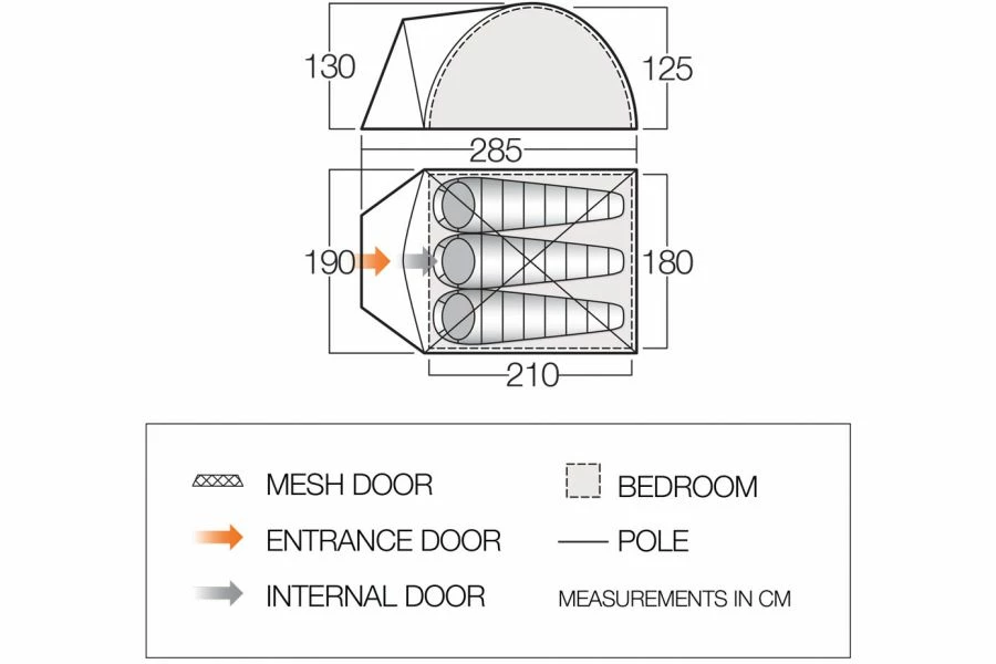 - Inner First Pitch – Simple and quick to pitch. Allows the tent to be used without the flysheet in warm climates