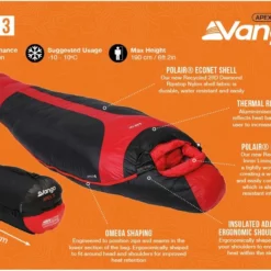- Insulated Adjustable Ergonomic Shoulder Baffle – Ergonomically shaped to fit around your shoulders to ensure you retain heat within the sleeping bag