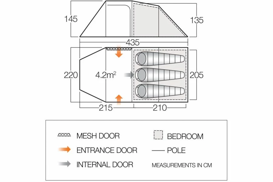 - Multiple flysheet doors – Provides easy entry from either side giving protection from prevailing winds