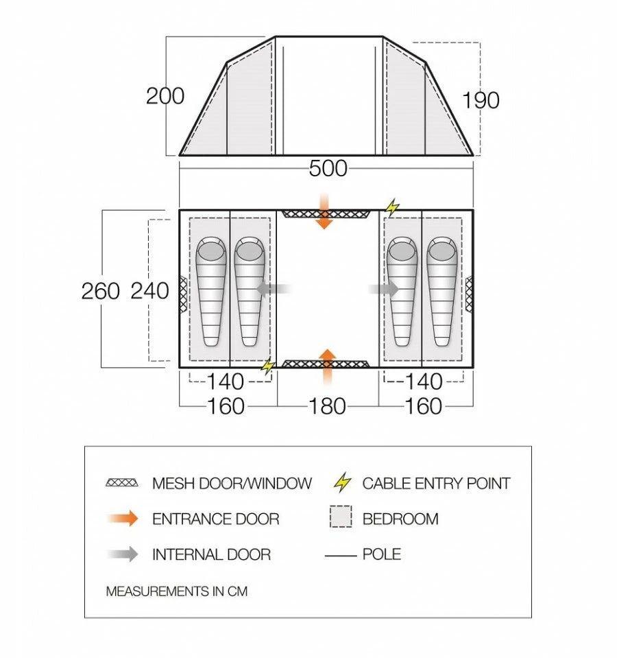 - Vango AirZone – High and low level ventilation panels combine to create a comfortable flow of air through the tent. Air circulation is essential for reducing condensation