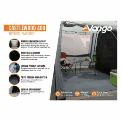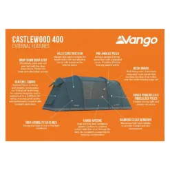Vango Castlewood 400 Tent Package, Includes a Free Footprint, 4 Person Vis A Vis style tent.