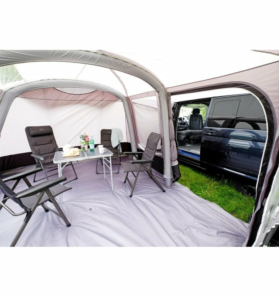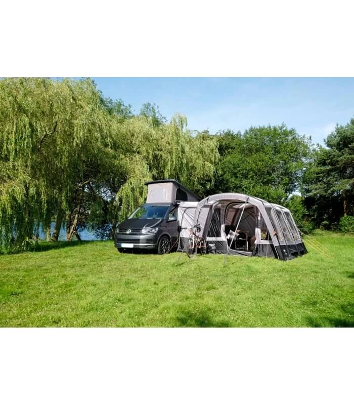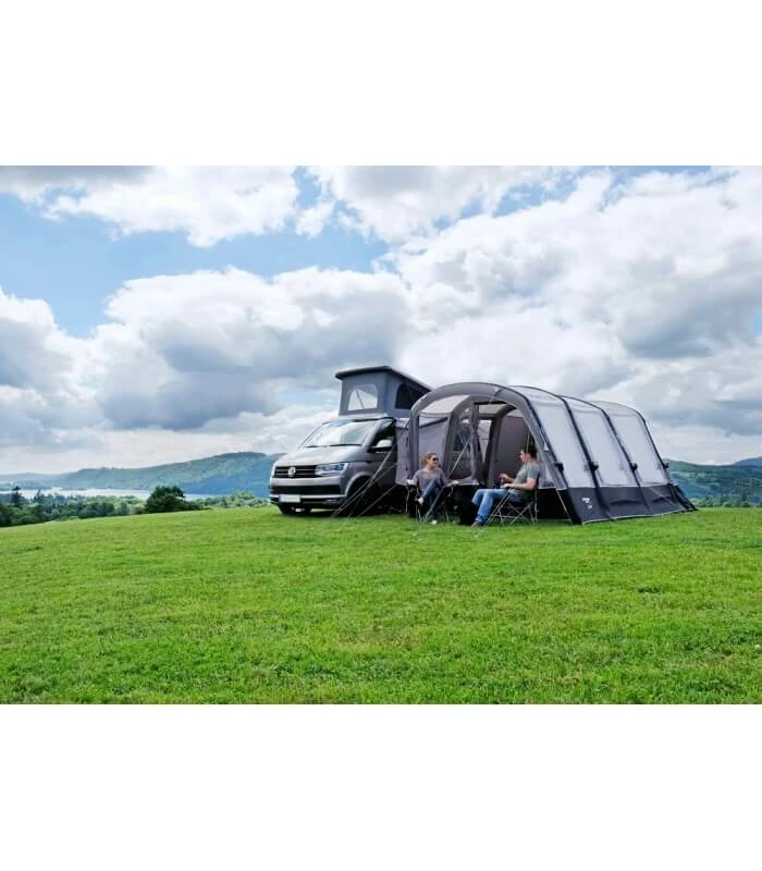 The Vango Galli drive away awning is ideal for anyone who wants a large and versatile space on their outdoor holiday. This awning boasts the option of space for two bedroom inner tents. Our inflatable AirBeam® technology means you can pitch this awning in a matter of minutes so you’ve got more time to enjoy your holiday. The pre-angled beams create ample height throughout and the Sentinel Pro Fabric is perfect for touring with your campervan. It’s also made even easier with multiple attachment options and the roll away tunnel allows you to drive away, leaving your awning free-standing.