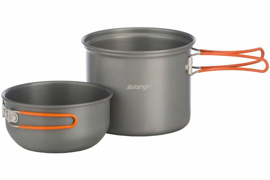 The Vango Hard Anodised 1 Person Cook Kit is ideal for solo campers and travelers. It features two pots with a combined lid, and is lightweight, non-stick, and easily packable. Enjoy fuss-free outdoor cooking with this durable and reliable cook kit.