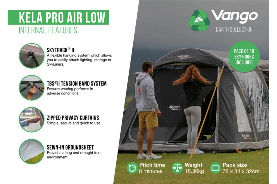 - Inflatable AirBeam® Structure – With 10 years’ experience in AirBeam® technology, we are the leaders in pole free pitching. AirBeam® technology ensures your awning is erect within a matter of minutes (supplied with AirBeam® pump)