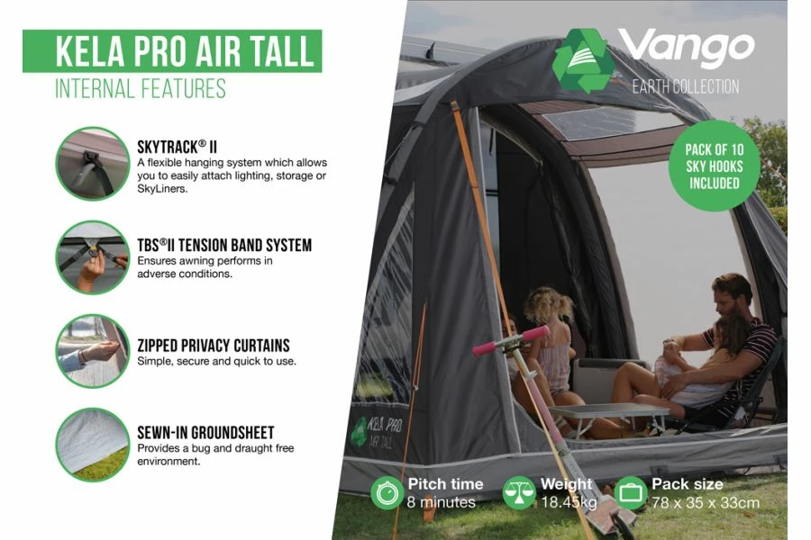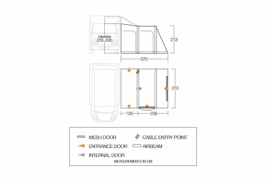 Vango Kela Pro Air Tall Drive Away Awning, Designed to fit vans between 245 and 295cm