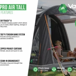 - Inflatable AirBeam® Structure – With 10 years’ experience in AirBeam® technology, we are the leaders in pole free pitching. AirBeam® technology ensures your awning is erect within a matter of minutes (supplied with AirBeam® pump)