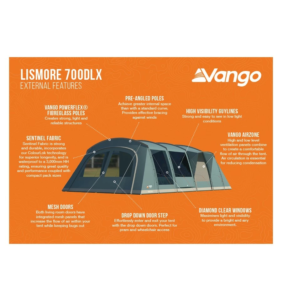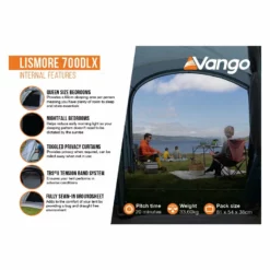 Vango Lismore 700DLX Poled Tent. Great Value large family tent, Come with a FREE Footprint.