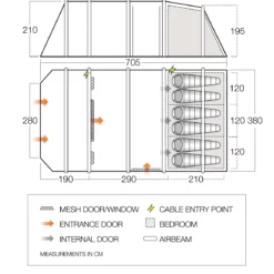 - Vango AirZone – High and low level ventilation panels combine to create a comfortable flow of air through the tent. Air circulation is essential for reducing condensation