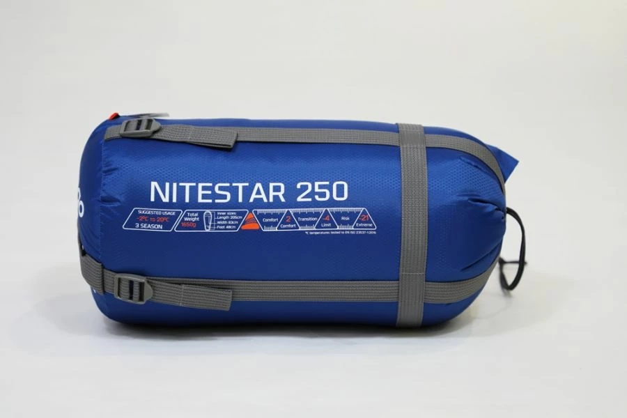 The Vango Nitestar Alpha 250, awarded for its excellence, is equipped with Alpha insulation technology, offering enhanced heat retention with greater compressibility, resulting in a smaller and lighter overall size.