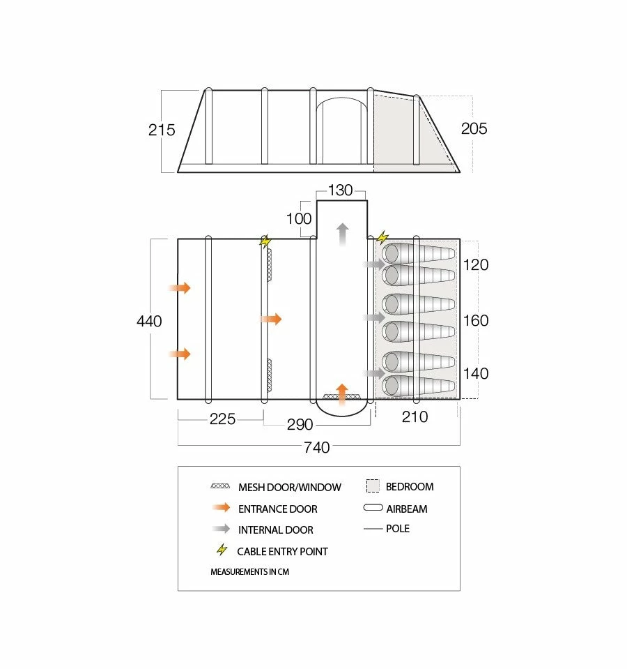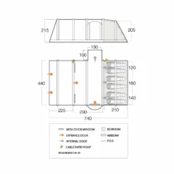 - High Cable Entry – Allows you to neatly run electrical cables out into the awning area at the front of the tent