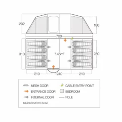 - High Cable Entry – Allows you to neatly run electrical cables out into the awning area at the front of the tent