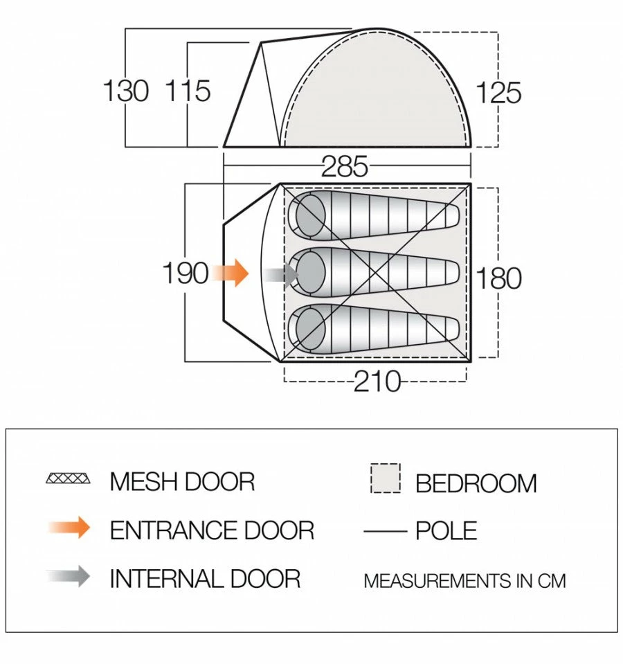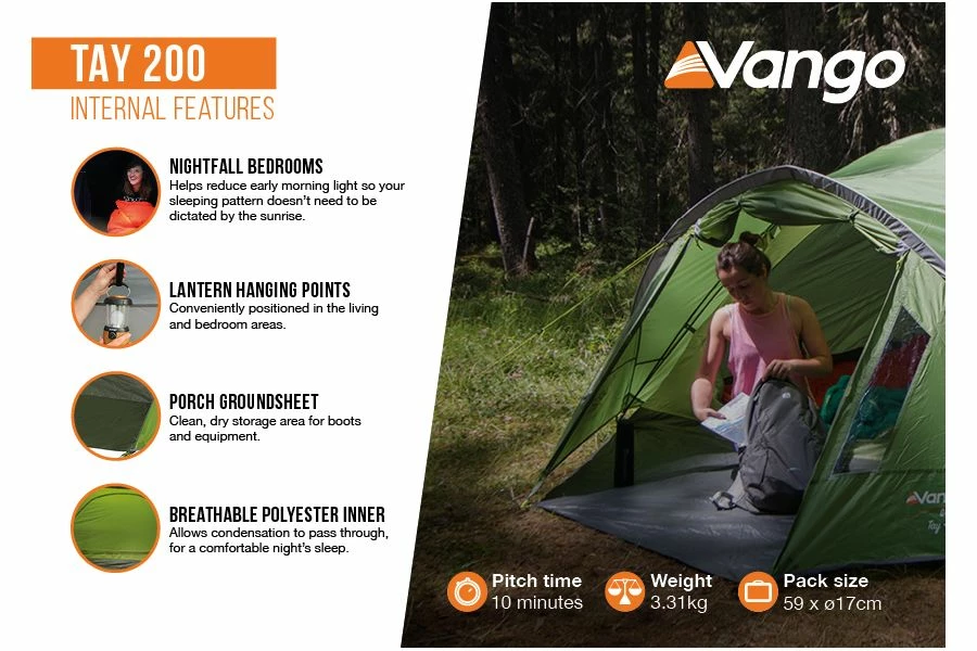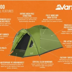 - Vango Protex® 70 denier polyester flysheet, 3000mm HH – Highly waterproof, durable and reliable fabric. Exclusive to Vango