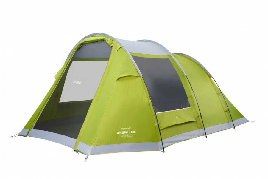 The Vango Winslow II 500, 5-man tent is a poled tunnel tent. Ideal for weekends away with the family or friends, the Winslow includes Nightfall bedrooms that reduce morning light, allowing you to sleep for longer. Add King Poles to transform the large front door into a useful sun canopy, providing much needed shade on hot summer days. The full mesh door and additional ventilation panels keep the air moving and reduce the risk of condensation.