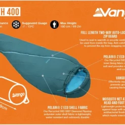 Designed with exploration in mind, the Vango Zenith 400 sleeping bag is eco-friendly, crafted from recycled Polair® Z Eco fabric and insulated with lightweight Insulite™ Helix Eco fill. Keep warm with its insulated zip baffles and 3D hood that maintain heat and reduce heat loss. The included stuffsack, lined with fleece, doubles as a pillow for added comfort and protection from bugs with its head and foot mosquito nets. Sleep soundly no matter where your journey takes you.